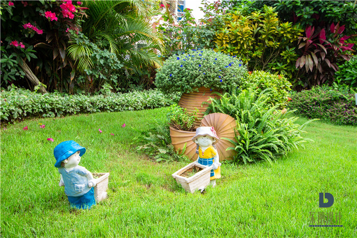 景觀小品方面,通過設(shè)計英式柱廊、雕塑、疊泉、花缽、花箱等景觀元素,配合組合擺放或者圍合等方式形成不同的空間以適應(yīng)不同的功能需求,營造出極致浪漫的具有濃郁英式風(fēng)格的生活情趣和氛圍。