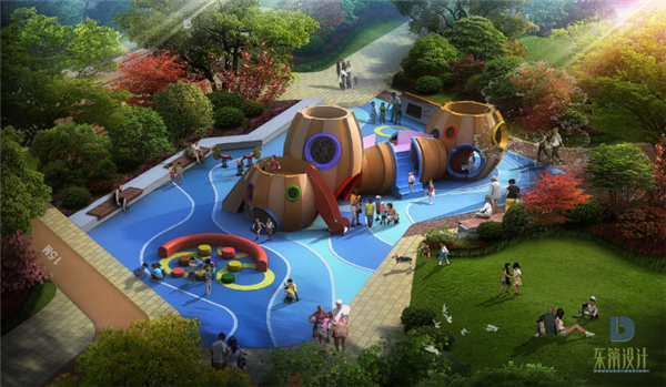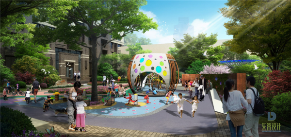景觀設計提取酒杯的形態設計成獨具特色的亭子,提供休息、靜讀的場所。在亭子上安裝地面投影照明裝置,夜晚時分在地面上投射出不同的影像,充滿趣味性和科技感。
